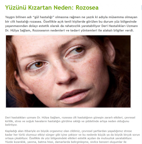 Hastane.com.tr -Yüzünü Kızartan Neden: Rozosea